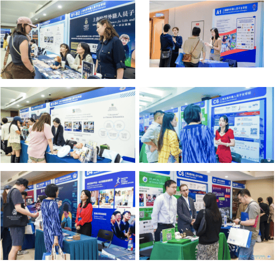 上海哈罗外籍人员后代学校校长Alex Reed先生则指导大师看到分数之外的世界,SAS、Concordia、德威、惠灵顿、哈罗、耀中、英国、虹桥国际等学校展位前一直人流如织。