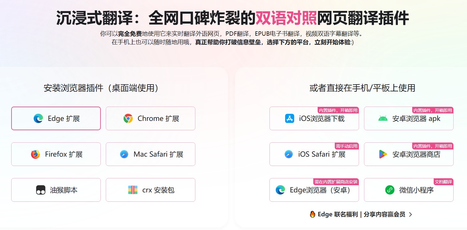 鐐瑰嚮娴忚鍣ㄥ伐鍏锋爮涓婄殑 Immersive Translate 鍥炬爣锛屾垨鑰呯偣鍑婚〉闈㈠彸渚х殑鎮诞蹇嵎鍥炬爣锛岃繘鍏ユ彃浠堕潰鏉匡紝閫変腑銆愯嚜鍔ㄥ紑鍚弻璇瓧骞曘€戦€夐」銆?/p>鍦ㄦ敮鎸佺殑瑙嗛骞冲彴涓婃墦寮€鎮ㄦ兂瑕佽鐪嬬殑瑙嗛锛屽YouTube銆丯etflix銆丅ilibili绛夈€?/p>濡傛灉鎮ㄩ€夋嫨鐨勮缃湪瑙嗛涓病鏈夌珛鍗崇敓鏁堬紝涓€鑸埛鏂伴〉闈㈠嵆鍙?/p>鐐瑰嚮灞曞紑鍏ㄦ枃鎵撳紑APP锛岄槄璇讳綋楠屾洿浣?/span>缃戝弸璇勮鑱氳秴鍊兼帹鑽?/h2>